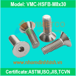 Bulong lục giác đầu bằng M8x30 Model: VMC-HSFB-M8x30 - Vật liệu: Inox 201, đầu bằng (côn) - Không dùng đệm phẳng và vênh - Sử dụng với chạy bi / lá / lẫy M8 - Phù hợp: phòng sạch,khung máy - Xuất xứ: China |